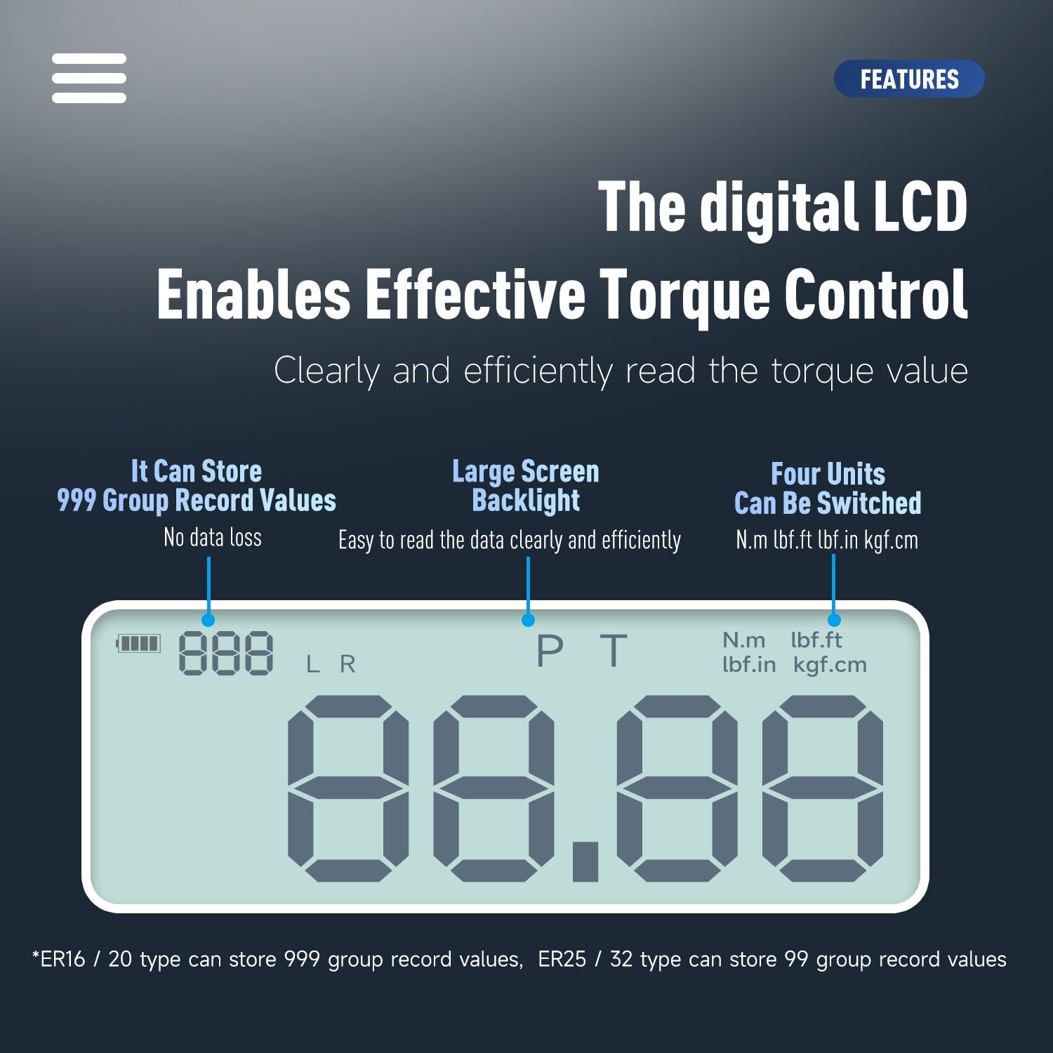 Digital Torque Wrenches for Remove and Install ER16 ER20 ER25 ER32 Collet Nut